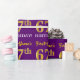 This wrapping paper design features a message like "First-Name’s 67th BIRTHDAY!", with the "67th" having a faux/imitation gold-like colour appearance. The name can be personalised, and the background is coloured purple. It could perhaps be used when wrapping gifts being given for somebody’s sixty seventh birthday. [~Z0000182]
