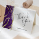 This elegant modern wedding thank you card features a purple alcohol ink border trimmed with faux gold foil and faux glitter. The customizable text combines the words "Thank You" in charcoal gray handwriting script and the names of the bride and groom in italic font on a white background.