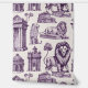 This luxurious wallpaper features a set of lions and statues in purple-ink style