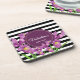 Purple Iris Botanical Black White Stripes Pattern Coaster