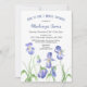 A lovely watercolor bridal shower invitation featuring spring flowers, purple iris, on a white background.