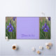 Elegant royal purple Iris blossom and bud among green leaves on the sides of a light purple lilac desk mat. This beautiful photographic botanical floral desk mat can be personalised with a Name. Irises commonly represent wisdom, faith, hope, courage and valour. The birth flower of February is the Iris suggesting loyalty and faithfulness. The Iris is also the 25th wedding anniversary flower. The Iris was named for the Greek Goddess of Greek mythology who carried messages from heaven to earth on the arc of the rainbow. The Iris, purple Irises in particular, is one of the State flowers of Tennessee and also inspired the fleur-de-lis design. The purple colour, being the blending of cool blue and warm red, lends to the purple Iris representation of peace and harmony.