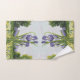 Purple Iris Flower + Green Field Botanical Art Hand Towel