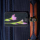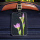 A colour pencil drawing of some pale purple iris adorns this customisable luggage tag!