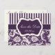 This aubergine purple, ivory, and soft pink striped damask save the date postcard matches the wedding invitation shown below. If you require any additional matching items, please email your request to niteowlstudio@gmail.com.