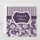 Purple, Ivory, Pink Striped Damask Wedding Invite