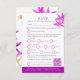 Purple orchid watercolor botanical wedding RSVP card. Hand-painted botanical watercolor Phaiocalanthe mauve hued orchid flowers wedding RSVP with meal options and QR code for easy replies. Personalise with your own wedding names, wedding meal options details, dietary requirements, boutonniere flower request return date and RSVP instructions. Ideal for a purple orchid floral wedding. Other matching items are available. © Original watercolor botanical hand painting, with purple hue and design by Sarah Trett for www.mylittleedenweddings.com on Zazzle.
