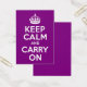 Purple and white "Keep Calm and Carry On" modern version of classic poster. Create your own business cards.