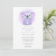 Celebrate the upcoming arrival with this charming baby shower invitation featuring a whimsical purple koala. Perfect for a baby shower, this invitation combines playful elements with elegant watercolor details. The vibrant colours and cute design make it an ideal choice for welcoming a new baby in style.