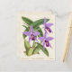 Postcard with a digitally cleaned and enhanced vintage botanical image of a Laelia Anceps Scottiana orchid on a light gold parchment background. Illustrated by Scottish botanical artist John Nugent Fitch for The Orchid Album, a series of books published in London, 1892-1897. Manuscript captions reproduced in original placement and similar fonts.