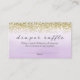 Diaper raffle tickets with faux gold glitter design and ombre purple lavender watercolor background.