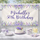 Celebrate 50 fabulous years with this elegant floral birthday banner featuring soft lavender and purple watercolor florals. A feminine and timeless backdrop perfect for dessert tables, photo areas, and milestone birthday décor.