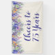 Celebrate 75 wonderful years with this elegant floral birthday banner featuring soft lavender and purple watercolor florals and a graceful “Cheers to 75 Years” message. A timeless, feminine backdrop perfect for dessert tables, photo areas, and milestone birthday décor.