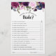 Watercolor Burgundy Purple plum lavender Floral Rustic Boho bridal shower game card "How well do you know the bride?" The design features a stunning bouquet of burgundy / Marsala , pink ,purple navy flowers with matching leaves. Please find more matching designs and variations in my "blissweddingpaperie" store. And feel free to contact me for any custom requests.