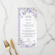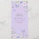 Personalise these pretty floral menu cards easily and quickly. Simply click the customise it further button to edit the texts, change fonts and fonts colours. Featuring pretty pastel lavender purple flowers, delicate greenery and purple and silver butterflies. Great for Quinceañera, Sweet 16, 18th birthday, debutante ball, bridal shower, birthday and many more occasions! Matching items available in store. (c) Somerset Fine Paperie