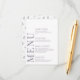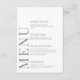 Elevate the allure of your romantic rustic wedding affair with a sophisticated and polished menu card. Embellished with intricate pattern with purple lavender flower blooms, this beautiful design is enhanced by personalisation, showcasing the names of the bride and groom on the reverse side.
