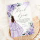 Purple Lavender Floral Silver Quinceanera Sweet 16 Thank You Card
