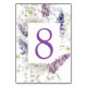 Love is in Bloom with these elegant table number cards. Shades of purple, lavender, lilac and blue grace the delicate florals that frame the table number. These cards are double sided so they may be seen from all angles. Printed on sturdy paper, they may be used with our without a frame.