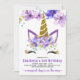 Purple Lavender Floral Unicorn Birthday Barty Invitation