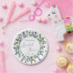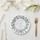 Bridal Shower Paper Plate. This design features a watercolor illustration of Purple lavender flowers and eucalyptus foliage. Personalise with your name and date. Text "Bridal Shower" is written in a script font.