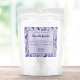 This elegant waterproof editable bath salts pouch label measures 4 inches by 3.5 inches (102 mm by 89 mm). It has a border featuring a lavender pattern surrounding a light purple panel with blue text with space for your company name, product name, ingredients, product description, and business contact information. This label is designed as a label for bath salt pouches, but it could also be used a a label for large cosmetic jars or other larger cosmetic containers.