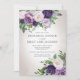 Beautiful plum purple and soft lavender watercolor floral and greenery on a botanical white wedding rehearsal dinner invitation. Contact us for help with customisation or matching products.