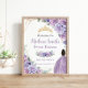 Personalise this chic Quinceañera / birthday party welcome sign easily and quickly, simply press the customise it button to further re-arrange and format the style and placement of the text. This sign decoration features gorgeous purple, lilac, lavender floral and gold accents. All text is editable! Great for Quinceañera, sweet 16, birthday party, bridal shower, Christening / Baptism and more! Matching items available in store! (c) The Happy Cat Studio.