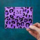 A monogram design with an initial letter to be personalised. This design has a black and purple animal print, leopard pattern.