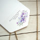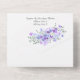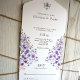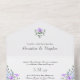Purple and light blue rose bouquets are beautiful on this all-in-one wedding invitation.
