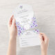 Purple, Light Blue Rose Garden Bouquet Wedding All In One Invitation
