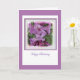 Beautiful lilac and white card with a framed purple flower reading happy birthday in a fancy script purple font.