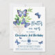 Purple lilac & blue butterfly themed 3rd birthday invitation