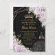 Purple Lilac Floral Black Dress Gold Quinceañera Invitation