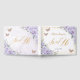 Cherish your special day for the years to come with a customized guest book. Featuring beautiful purple, lilac, lavender flowers and gold butterflies. Personalize it with your details easily and quickly, simply press the customize it button to further re-arrange and format the style and placement of the text. (c) The Happy Cat Studio
