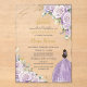 Purple Lilac Floral Princess Gold Quinceañera XV Acrylic Invitations