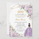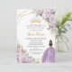 Purple Lilac Floral Princess Gold Quinceañera XV Invitation