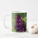 Original close up photo of a purple lilac beginning to bloom. Add your own name or text to personalise your mug.