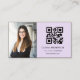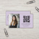 Promote your professional brand with this modern purple lilac photo business card. Featuring a clean white background, your own photo, and a custom QR code that links to your website or social media, this design is both stylish and functional.