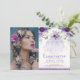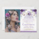 When it comes to your daughter's quinceañera, you really only have one opportunity to make her feel like the queen of the day. Make sure all of their friends and family come by with this elegant invitation. The design features a sparkly lavender glitter dress adorned with elegant watercolor purple and lilac roses and soft greenery. Click the "customise further" button if you wish to re-arrange and format the style and placement of the text.