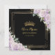 Personalise this elegant floral square invitation card easily and quickly. Simply click the Edit Using Design Tools button to edit the text, change fonts and fonts colours. Featuring beautiful light purple lilac, lavender roses floral against a dark black background and chic gold accents. All text is editable. The crown is moveable, resizable, duplicatable, and removable, allowing you to customise the design to suit your occasion.