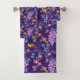 A Beautiful Purple Bath Towel Set Designed With Birds And Purple Lilacs
