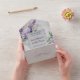 This lovely invitation features lilac with heather bouquets on a soft grey marbled background and is suitable for many types of weddings - from casual to more formal affairs. The All-in-One wedding invitations are both beautiful and practical by combining the wedding invitation with an easy to remove perforated RSVP postcard. They are also quick and easy to prepare for mailing. Simply address the invitation, fold the back flap and seal with the included clear stickers. Once your guests receive the pre-addressed invitation they simply tear off the perforated RSVP card and drop it in the mail. The addition of the QR code allows your guests to easily access your wedding website for information including reception details and dinner choices! Simply replace the sample URL with the URL from your wedding website.