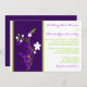 This modern purple, lime green, and white floral wedding invitation would be perfect for a spring or summer wedding. There is a text box on the back to add any extra text you may want, or you can remove the text instead. The text and paper is all customisable. It is shown here on basic paper. I would NOT use metallic gold, or silver paper as they will both severely alter the colour of the card. If you want an ivory colour instead of white, the champage metallic paper or felt paper will give that result. The linen paper will give a very crisp white look that would also look great with this invitation. ***PLEASE NOTE that if you change the font or size of the font, it may alter how your invitation prints. It will print the way you see it on your monitor, so if you have alignment issues, or sizing problems, please contact me for help before you order. I will not see your invitation once you order it, and Zazzle will NOT edit anything (typos, alignment, etc.). If you require assistance or would like any other matching items, please email your request to niteowlstudio@gmail.com.