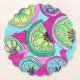 A charming scalloped coaster offers a burst of vibrant colour, showcasing an array of hand-drawn fruit slices artfully arranged across its surface. The playful design features a medley of fruits—lemon, lime, orange, and grapefruit—each slice meticulously detailed with rich hues of yellow, green, orange, and pink. The intricate, hand-drawn elements lend a personal and artisanal touch to the coaster, making each piece unique. The scalloped edges add an elegant finish, enhancing the whimsical yet sophisticated appeal. Perfect for adding a splash of cheer to any table setting, this coaster serves as both a functional accessory and a lively conversation piece.