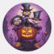 Purple little wizard pagan monsters cute Halloween Classic Round Sticker