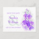 Pretty purple floral lobelia flower loose watercolor save the date invitation. Edit this save the date wedding card with your own bride and groom's name and your venue details. Unique design and original watercolour lobelia painting by Sarah Trett.