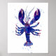 a decorative illustration of a blue and purple coloured lobster as a decorative poster print.