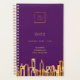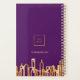 A purple background, with a modern, abstract faux gold city skyline as decor. Personalise and add your business logo, name and contact inforfation. Golden letters