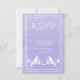 Elegant and simple Purple Lovebird Floral Wedding Response Card featuring a lovebirds resting on a floral vine. This trendy design is a unique choice for a modern wedding. Easy to customise with your wedding details. Click "Customise It" to find more personalisation options.