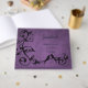 Record the guests to your big day with a Purple Lovebirds Wedding Day Guestbook. Guestbook design features a purple grunge background adorned with a leafy vine and two resting lovebirds. Personalise with the groom and bride's names along with the wedding date. Additional wedding stationery available with this design as well. Need help with customisation? Please contact me and I will work out the wording and details to fit this design to your satisfaction.
